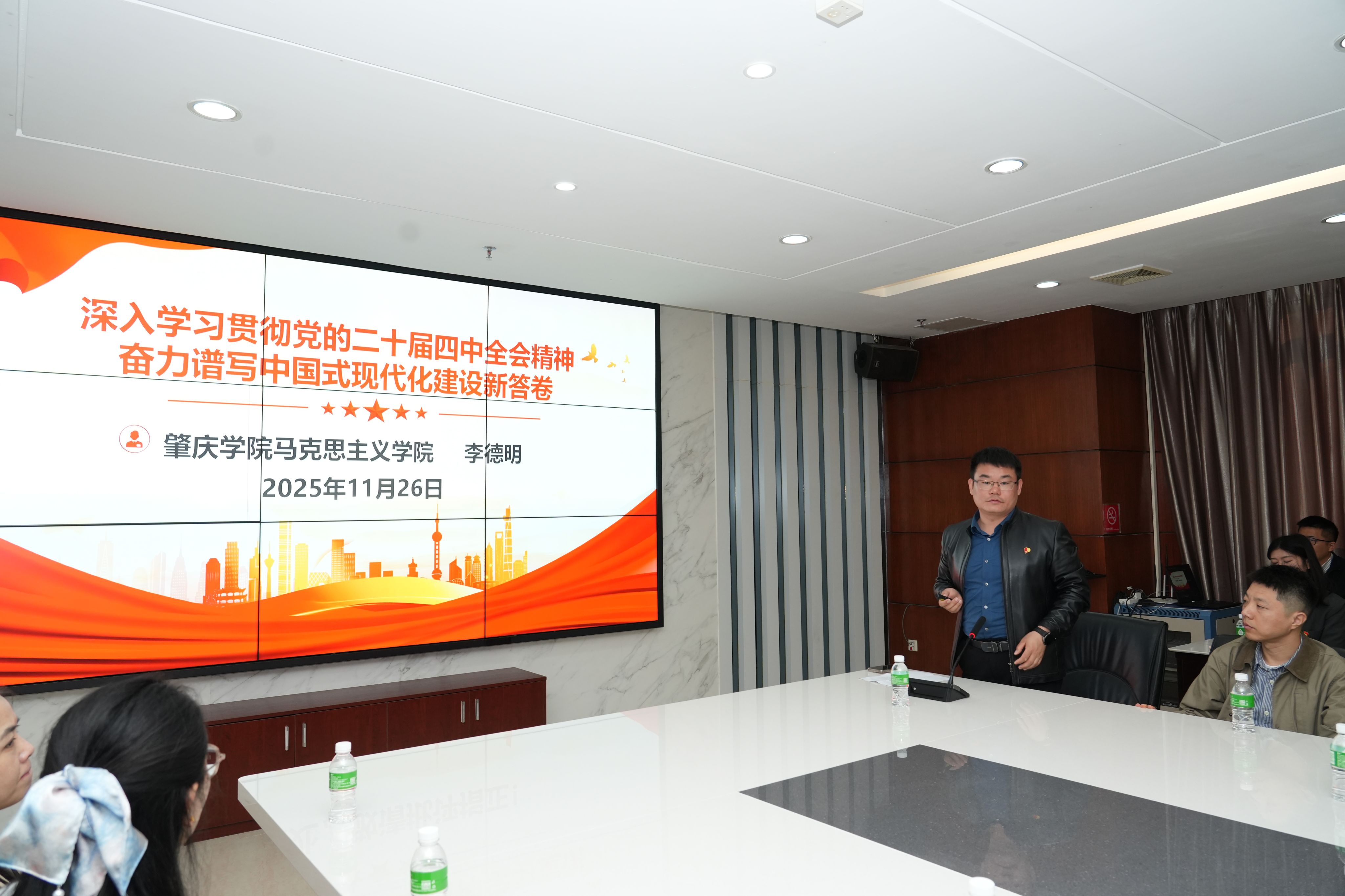 在集中理论学习环节,肇庆学院党的二十届四中全会精神宣讲团成员李德明博士围绕党的二十届四中全会的重大意义、核心要义、精神实质以及实践要求等方面,进行全面深入的解读,并结合禄步镇在绿美生态示范村建设与特色产业发展等方面的实践案例,引导党员深刻把握全会提出的“加快农业农村现代化,扎实推进乡村全面振兴”等重大任务及其指导意义,并深入阐释了“分类有序、片区化推进乡村振兴”的实施路径。