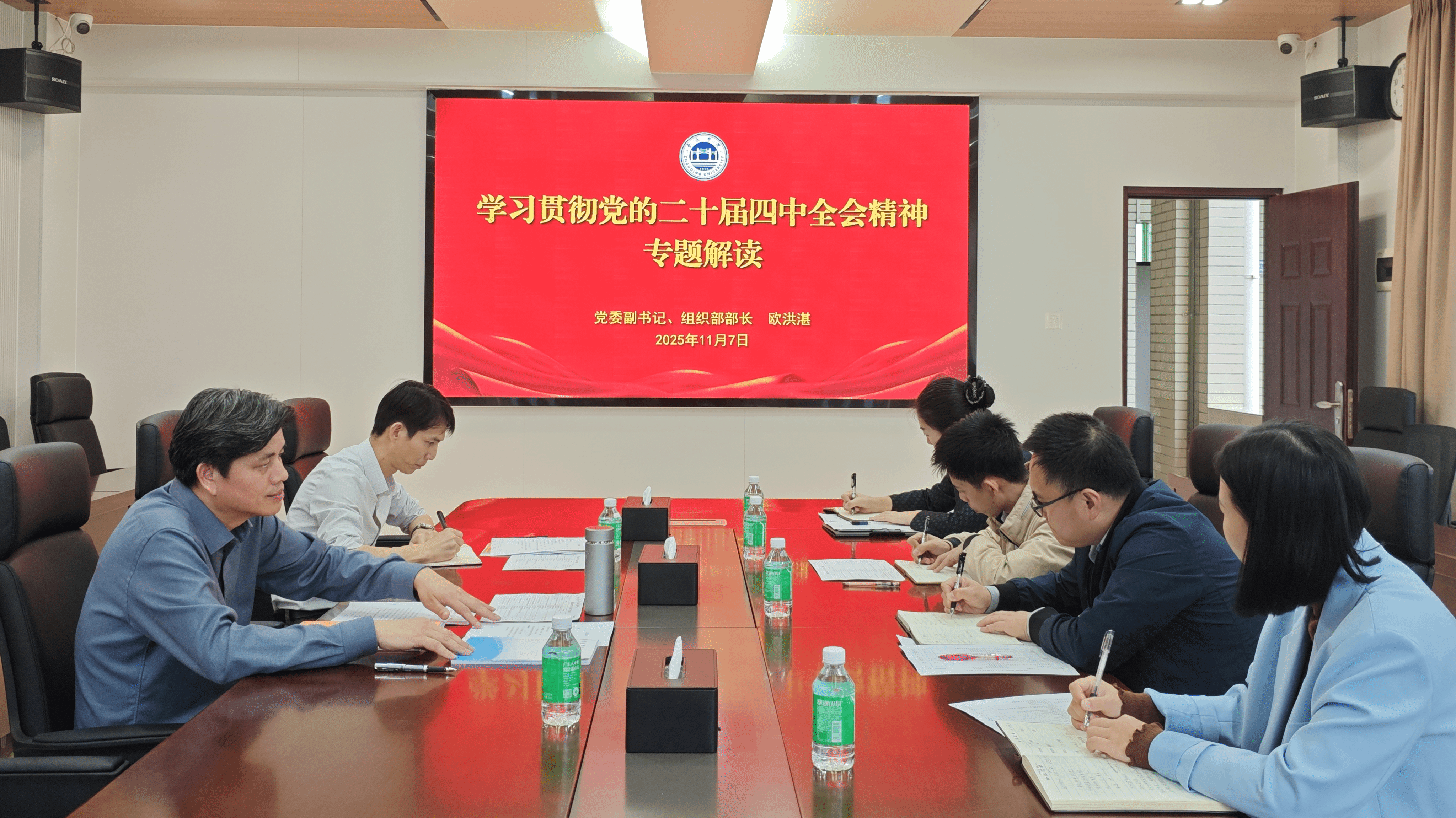 11月7日,校党委副书记、组织部部长欧洪湛到组织部党支部讲授学习贯彻党的二十届四中全会精神专题党课,组织部党支部书记、副部长谭裕开主持会议,党支部成员参加。