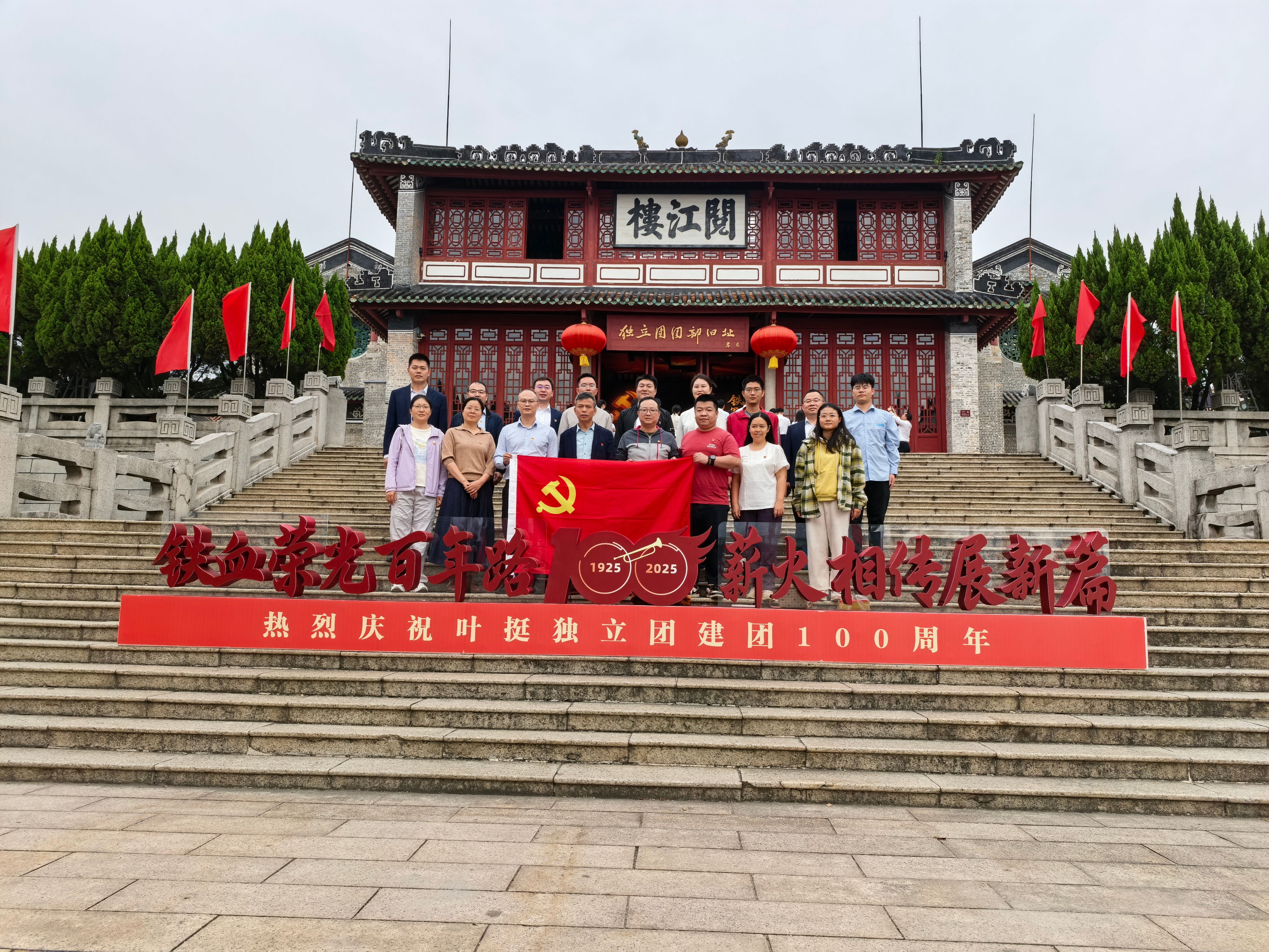 2025年12月12日,基础建设部党支部、学生工作部党支部联合中国建筑第六工程局有限公司、广州珠江监理咨询集团有限公司到肇庆市“叶挺独立团团部旧址”阅江楼开展“校企党建联学共建 共推职教城项目建设”主题党日活动。